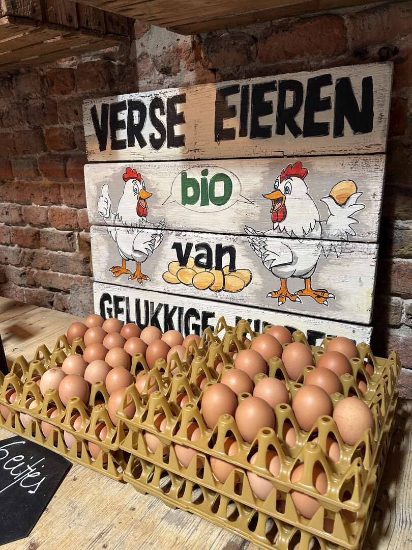 In de hoevewinkel vind je biologische groenten, eieren van eigen kippen, en zuivelproducten van Milki uit Zevekote. Jan Wydooghe maakt wekelijkse vegetarische quiches en burgers met groenten uit de Biopluktuin. Verder bieden we natuurvlees, appelsap van de kinderboerderij, en producten van Duinhelm zoals nestkastjes, insectenhotels, confituur en gedroogd fruit.